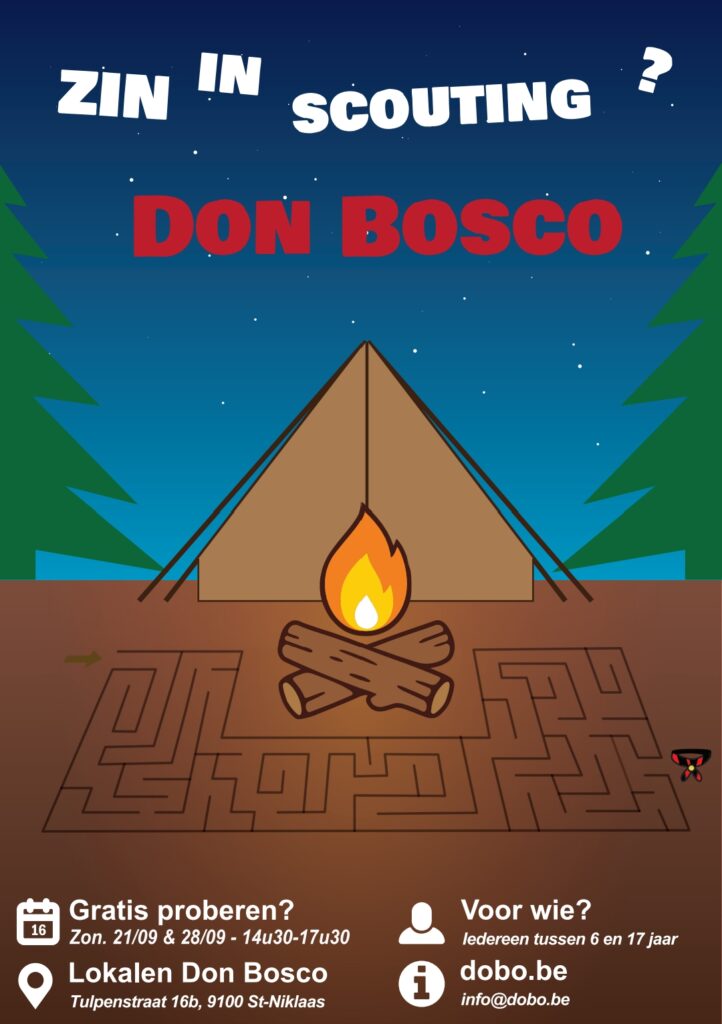 Scouts Don Bosco is een fijne, gezellige scouts in hartje Sint-Niklaas. Al jaar en dag zijn we terug te vinden in de Bloemetjeswijk, ook gekend als de Priesteragiewijk. Elke zondag beleven we spel en avontuur. En af en toe trekken we ook eens op weekend en kamp. Goed ravotten in de natuur, technieken onder de knie krijgen en vrienden maken voor het leven, dat is scouting! Zin in Scouting? Kom dan zeker eens proberen!